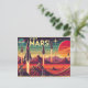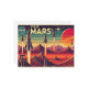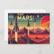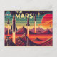 Aqui está o cartão postal viagens vintage com Marte com foguetes estilizados lançando-se no céu. 🚀 🔴 ✨ A paisagem é vermelha e rochosa com picos irregulares e dunas de areia, enquanto o céu tem um gradiente de laranja e roxo com estrelas distantes. Os foguetes futuristas elegantes deixam rastos brilhantes. A tipografia ousada e retrorreflectora diz "Visite Marte!", criando uma vibração nostálgica e viagem de espaço
