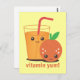 Vitamin Yum apresenta um copo de suco de laranja e uma laranja em estilo kawaii. O copo tem um canudo saindo dele. Muito fofo, divertido e delicioso!