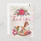 Um obrigado de natal que você fez. O fundo é uma colagem de estilo vintage com uma imagem esmaecida de rosas cor-de-rosa, folhas verdes e escrevendo francês. Camadas sobre o topo está um bonito buquê de natal de poinsettia e um cavalo de balanço vitoriano cercado de peônias e posições rosa bonito. Mensagem personalizada no verso.