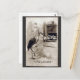 As mãos "Bem-vindas" estão a abrir uma janela para aceitar uma entrega de uma cegonha neste anúncio de nascimento de 1909.