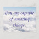 Este produto exibe uma fotografia de um céu azul com nuvens. Em cima da fotografia está o texto, "Você é capaz de coisas incríveis."
