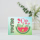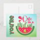 Divirta-se com este cartão-postal "Você é Um em um Melão", com um sapo alegre piscando de um flutuador de melancia. Burst com cores brilhantes e charme, este design iluminado é uma maneira deliciosa de enviar sorrisos, compartilhar encorajamento, ou simplesmente lembrar alguém que ele é realmente um dos tipos.