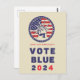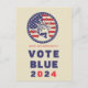 Cartão-postal com o crachá original do estilo retrô Liberty com "Salvar a Nossa Democracia, Votar Azul, 2024" em texto patriótico e colorido sobre fundo brando