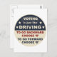 "Votar é como dirigir; ir para trás, escolher 'R', ir em frente, escolher 'D.' ..."Democratas, sempre o menor de dois mau!" Camisetas, botões, troca de campanha.