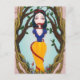 Minha própria pintura acrílica foi usada para criar este cartão postal de arte. Esta pintura foi influenciada pela versão Brothers Grimm da Branca de Neve. A Branca de Neve foi "enlacada" pela Rainha Wicked disfarçada e está agora presa e sozinha. Um pente e uma maçã envenenados estão por perto. Sete cogumelos cercam os pés de Branca de Neve...
