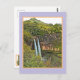 Este postal apresenta a bela cascata dupla em Kauai. Fotografia com efeitos digitais para um olhar pareado