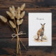 Envie uma peça de arte a um amado com este cartão postal personalizado. A frente apresenta o belo design de canguru com aquarela, fazer mais do que uma simples nota — é uma pequena obra de arte. É perfeito para enviar uma mensagem pensativa ou simplesmente compartilhar a beleza desse design único com amigos e familiares. Personalize-o com uma frase como Desejar que você fosse selvagem, Saudações do Exterior ou Cartão-Postal do Selvagem.