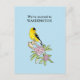 Washington - arte de aquarela de aves do estado (Willow Goldfinch) e flores do estado (costa rododendron) de Annie Mason.