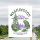 Rendered in a captivating purple and green color palette, this Washington state art postcard is an ideal souvenir for outdoor enthusiasts, a cherished memento for residents, or a wonderful gift for anyone who loves Washington. Celebrate its establishment in 1889 and the unparalleled natural wonders of the Evergreen State.