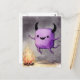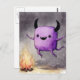 Cartão Postal Watercolor Cute Purple Monster and a Campfire