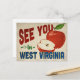 Um cartão postal encantador da viagens vintage West Virginia apresentando uma adorável maçã vermelha, junto com um texto divertido no estilo retrô que diz, "Vemo-nos na Virgínia Ocidental"