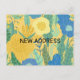 Custom Address change of address yellow blue floral, moving trendy announcement postcard.