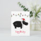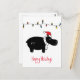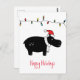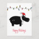 Ilustração de hippo negro Whimsical com chapéu vermelho de Papai Noel, uma sequência de luzes de feriado e texto personalizável de "Feriados Felizes"