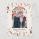 Send your loved ones a cheerful holiday postcard. Center left blank for photo or custom message. Warm, whimsical design with bows and ornaments.