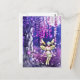 "Sussurros da Fada Lua" Essa design encantadora apresenta uma fada esbranquiçada graciosamente sobre um balanço de madeira em uma floresta mágica. A fada tem asas vibrantes de borboletas amarelas e pretas adornadas com espirais delicadas, e ela veste um topo verde com leggings e botas listradas amarelas. Uma coroa de flores azuis repousa sobre seu cabelo cor de menta, acrescentando a sua beleza etérea. O fundo é uma cena de sonho banhada em púrpuras e azuis, com flores brilhantes, borboletas luminosas e estrelas cintilantes espalhadas por toda parte. Arrancar árvores e pendurar videiras completam o cenário fantástico, dando à imagem toda um charme surreal, de outro mundo.