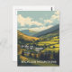 Um cartão postal ao estilo vintage de County Wicklow, Irlanda, apresenta matizes suaves e charme retro, destacando colinas florestais, lagos serenos e a beleza eterno do Jardim da Irlanda.
