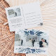 Obrigado de casamento botânico moderno que você postcard apresenta uma borda de cima e de baixo da folhagem de cor d'água exuberante em tons gelados de azul, fazendo três fotos favoritas de casamento alinhadas lado a lado. Personalize com os seus nomes e data de casamento, com a inscrição "amor e obrigados" em caracteres não negros. Adicione sua mensagem pessoal pré-impressa ao verso com uma foto adicional. Também inclui seu endereço de devolução com amplo espaço para endereçamento de destinatário. Se você preferir adicionar uma mensagem manuscrita, simplesmente exclua o texto de exemplo mostrado. Concebido para coordenar com o nosso convite e coleção de artigos de papelaria do Wild Azure.