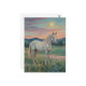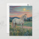 Um cavalo branco majestoso é silenciado contra um pôr do sol que respira, seu homem levemente erguido por uma brisa sussurrada. Sabias que cavalos podem dormir tanto em pé como deitados? Essa cena tranquila captura o cavalo num momento de silenciosa contemplação, sua forma se misturando perfeitamente com as colinas rolantes e flores silvestres da paisagem ao redor. O sol de configuração lança um brilho quente, pintando o céu em uma tapeçaria de matizes vibrantes. É uma cena que evoca um senso de paz e tranquilidade, nos convidando a pausar e apreciar a simples beleza da natureza.