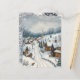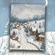 Capturar a magia do inverno com este charmoso cartão postal com uma cena de serena vila de neve. O painterly design retrata um dia pacífico de inverno em uma cidade antiquada, onde a luz suave das janelas adiciona um encanto confortável às ruas silenciosas e cobertas de neve.