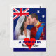 O príncipe William e a princesa Catherine - Duque e Duquesa de Cambridge - são o futuro rei e rainha da Austrália. Este cartão tem o famoso beijo real da varanda. A bandeira australiana enfeita o fundo. O cartão postal diz que a AUSTRÁLIA ama WILLS & KATE.