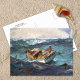 Cartaz de arte fino com a pintura, A Corrente do Golfo (1899), do artista americano do movimento de realismo Winslow Homer (1836-1910). Uma paisagem marinha no Caribe com tubarões nadando na água ao redor de um homem lutando contra as ondas em um barco de pesca.