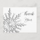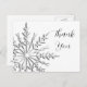 Personalize o Floco de Neve de inverno bonito Obrigado Cartão-postal com sua própria mensagem pessoal de apreço e gratidão. Adequado para ofertas recebidas após os anos de dezembro, Janeiro ou fevereiro de inverno, chá de panela, casamento ou feriados. Este elegante cartões de agradecimentos de inverno personalizado apresenta um intricado design de floco de neve de cinza prateada com fundo branco.