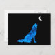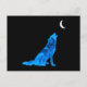 Cartão Postal Wolf Howling Azul na Lua