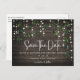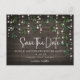 Cartão Postal Wood String Lights Script Casamento Salvar a Data