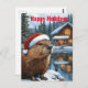 Cartão Postal Woodland Cabine Lake Christmas Beaver Watercolor