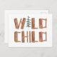 Cartão postal de criança selvagem ilustrado com madeira e pinheiro.