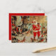 Uma ilustração elegante de Papai Noel, seus elfos e suas renas na oficina.