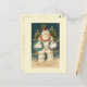 Cartaz de férias de Vintage, imagem de um boneco de neve decorado com mortes de Natal