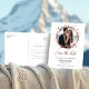 Um casamento simples e elegante Salve o cartão de Data com coroa floral chic e design de folha de ouro rosa que é fácil de personalizar com seus detalhes. O cartão tem um estilo moderno, caligrafia personalizável, letra escrita à mão e convite para o casamento de fotos de coroa.