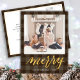 Envie cartões de natal personalizáveis e personalizados a amigos, colegas e familiares em cartões de estilo simples, chic, elegantes e modernos de design fotofestivo, minimalista natural! Uma bela caligrafia de ouro de quadros de feliz na parte inferior da sua foto na frente. Abaixo, a caligrafia apresenta sua mensagem de saudação personalizada do nome da sua família na tipografia moderna. Inverter para revelar um belo plano de fundo de xadrez castanho escuro.