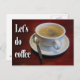 Cartão Postal Xícara de café com mesa de madeira