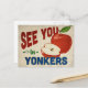 Um charmoso cartão-postal antigo de Yonkers, Nova York, com uma linda maçã vermelha, juntamente com um divertido texto retrô que diz "Vejo você em Yonkers"