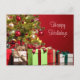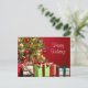 Yorkie, ou Yorkshire Terrier, esconde-se entre os presentes de Natal esperando por um vislumbre de Papais noeis que adoram cachorros bonitos e cartões postais de Natal