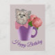 Cartão Postal Yorkshire Terrier com flores Feliz aniversário