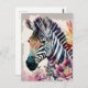 Cartão Postal Zebra Retrato Floral Watercolor Art