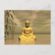 Zen buddha sentado meditação posou sobre a água e ao lado de um bambu ao pôr do sol