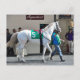 Zen Papa, um potro bem construído de cor branca, de 3 anos, indo ao posta em Aqudut durante um dia frio de inverno. Liderado por seu noivo e manipulador e montado por jockey Irad Ortiz jr. vestindo o seletor verde e branco número 5. Este lindo puro-sangue é construído como uma máquina enquanto ele caminha em direção ao paddock como seus admiradores olham. Fleetphotoname