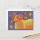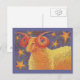Aries o carneiro se coloca contra um céu noturno cheio de estrelas ouros. Sinal de fogo, 21 de março - 20 de abril (pode haver variação nas datas). Cartão postal com um design personalizável dourado, laranja, roxo e azul na frente para que você personalize com seu próprio texto, imagens e ideias. Um lápis de cor original e desenho de tinta metálica de Jess Perry.