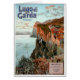 Poster de viagens vintage restaurada e digitalmente melhorada mostrando o município italiano de Tremosine sobre um lago de olhar para baixo. Imperfeições removidas. Cores corrigidas. Imagem cortesia da Biblioteca do Congresso.
