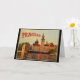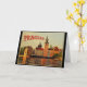 Este charmoso impressão de Praga, na República Checa, mostra edifícios na água com um título retrô de Praga no canto superior esquerdo.