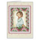 Imagem bonita de uma menina que praying em seus joelhos com rosa bonito e rosas vermelhas.