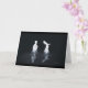 Fotografia de alta velocidade capturou leite caído de um conta-gotas para uma panela d'água. As formas de splash resultantes me lembraram de um casal se preparando para dançar. O cartão de saudação é vazio de dentro, adequado para a maioria das ocasiões.