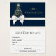 Design de Natal luxuoso e rico com uma esplêndida silhueta de árvore de Natal com flocos de neve ouros. Decorado com um arco de presente de ouro branco sobre um fundo azul escura e escura. Esta certidão festiva é perfeita para a sua pequena empresa ou para oferecer amigos e família.