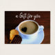 Uma ilustração de "ter uma pausa" com uma xícara branca de café - o café com forma cardíaca feito de espuma, 2 pedaços de chocolate zwieback rusk e alguns grãos de café sobre fundo rústico de madeira. Perfeito para o proprietário do compro de café ou qualquer outro negócio e serviço relacionados.