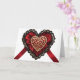 Cartão de Coração do Dia dos Namorados de Renda Preta e Seda Vermelha com Coração de Ouro