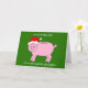 Um desenho de um banco de porcos vestindo um chapéu de Papai Noel, colocado contra um fundo verde escuro e colorido. As palavras "Um presente de natal a um neto muito especial" acompanham a imagem.
